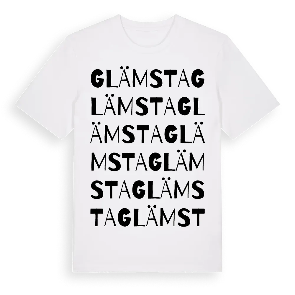 Glämsta ordlek t-shirt är inspirerad av byn Glämsta i Stockholms län, Sverige. Tröjan är designad för dig som har en speciell koppling till platsen – oavsett om du bor här, har rötterna här eller bara älskar Glämsta.