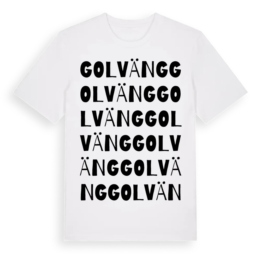 En ordlek byggd på Golvängs namn. Subtilt och klurig – ett motiv som bara de som verkligen känner platsen fullt ut förstår. Premium bomull, unisex – från Golväng i Stockholms län.