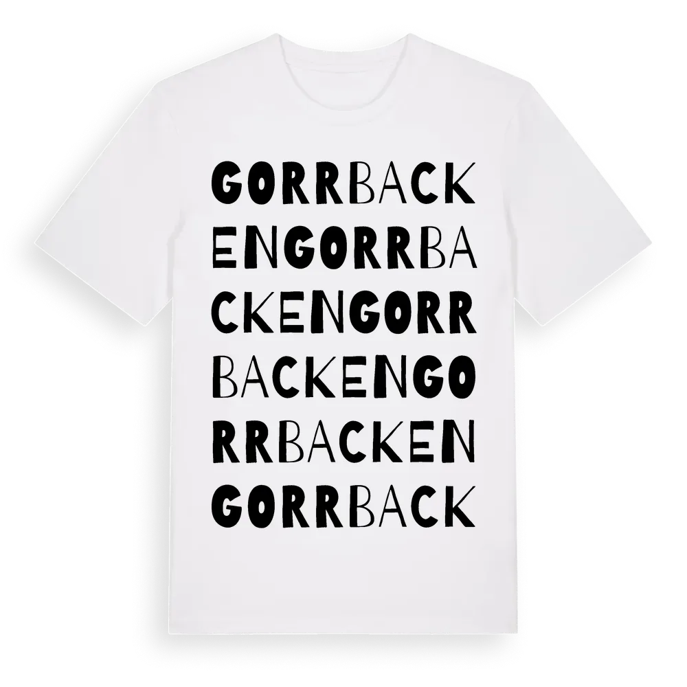 En ordlek byggd på Gorrbackens namn. Subtilt och klurig – ett motiv som bara de som verkligen känner platsen fullt ut förstår. Premium bomull, unisex – från Gorrbacken i Stockholms län.