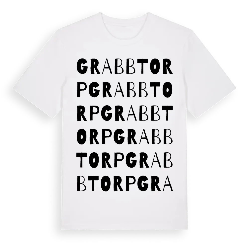Grabbtorp ordlek t-shirt är inspirerad av Grabbtorp i Stockholms län, Sverige. Tröjan är designad för dig som har en speciell koppling till platsen – oavsett om du bor här, har rötterna här eller bara älskar Grabbtorp.