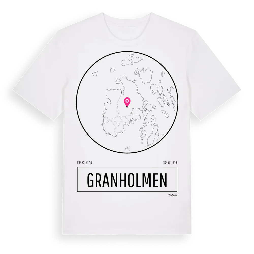 Granholmen t-shirt är inspirerad av ön Granholmen i Stockholms län, Sverige. Tröjan är designad för dig som har en speciell koppling till platsen – oavsett om du bor här, har rötterna här eller bara älskar Granholmen.