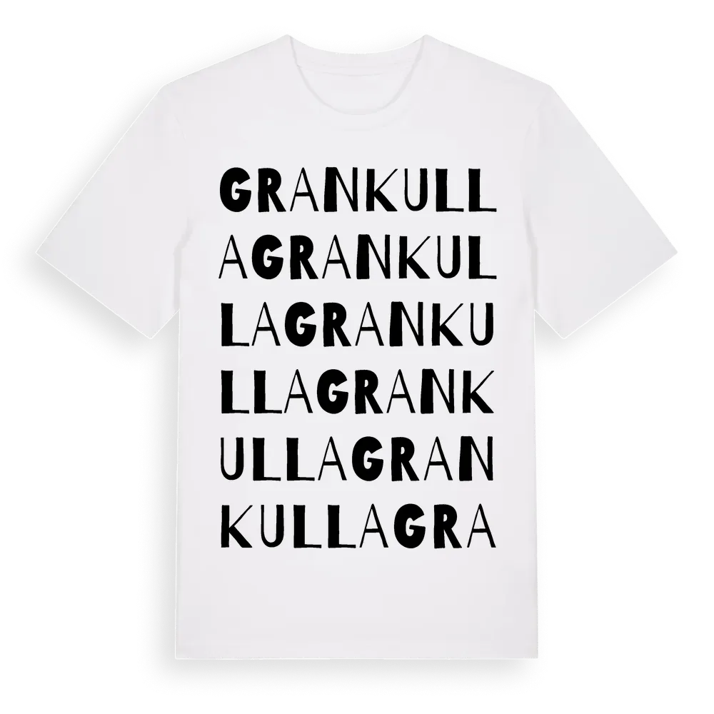 Grankulla ordlek t-shirt är inspirerad av Grankulla i Stockholms län, Sverige. Tröjan är designad för dig som har en speciell koppling till platsen – oavsett om du bor här, har rötterna här eller bara älskar Grankulla.