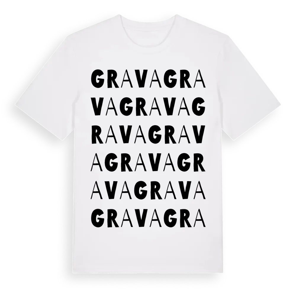 En ordlek byggd på Gravas namn. Subtilt och klurig – ett motiv som bara de som verkligen känner platsen fullt ut förstår. Premium bomull, unisex – från Grava i Stockholms län.
