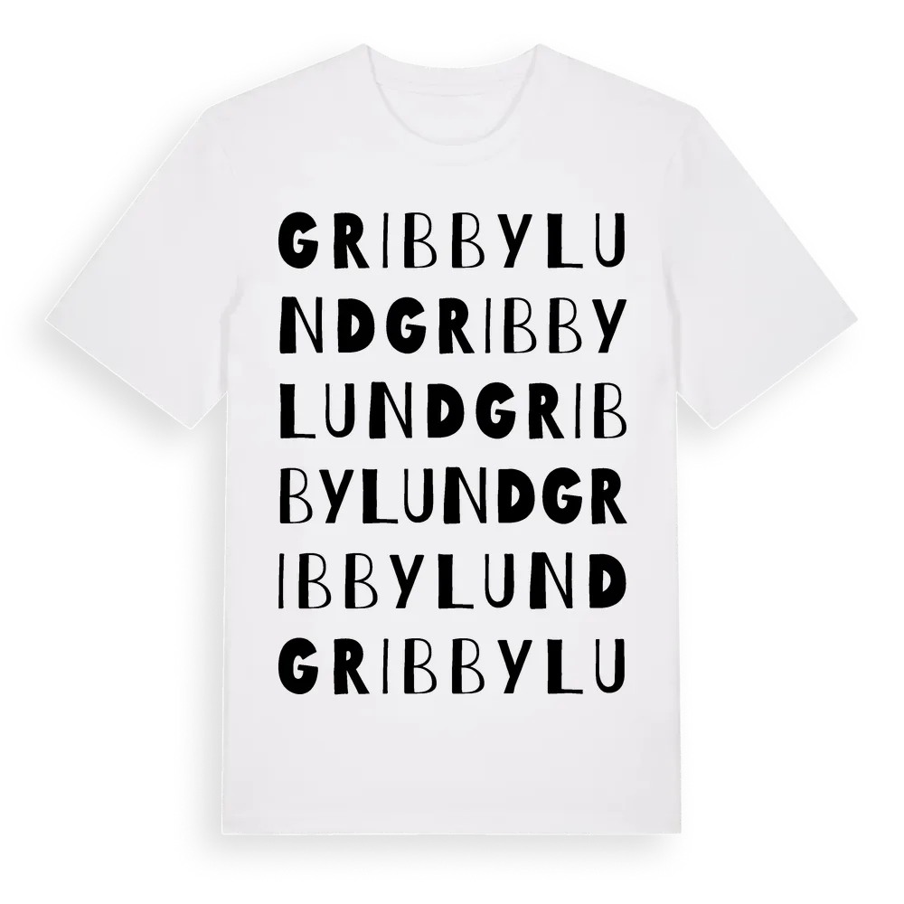 Gribbylund ordlek t-shirt är inspirerad av Gribbylund i Stockholms län, Sverige. Tröjan är designad för dig som har en speciell koppling till platsen – oavsett om du bor här, har rötterna här eller bara älskar Gribbylund.
