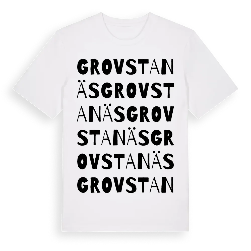 Grovstanäs ordlek t-shirt är inspirerad av byn Grovstanäs i Stockholms län, Sverige. Tröjan är designad för dig som har en speciell koppling till platsen – oavsett om du bor här, har rötterna här eller bara älskar Grovstanäs.