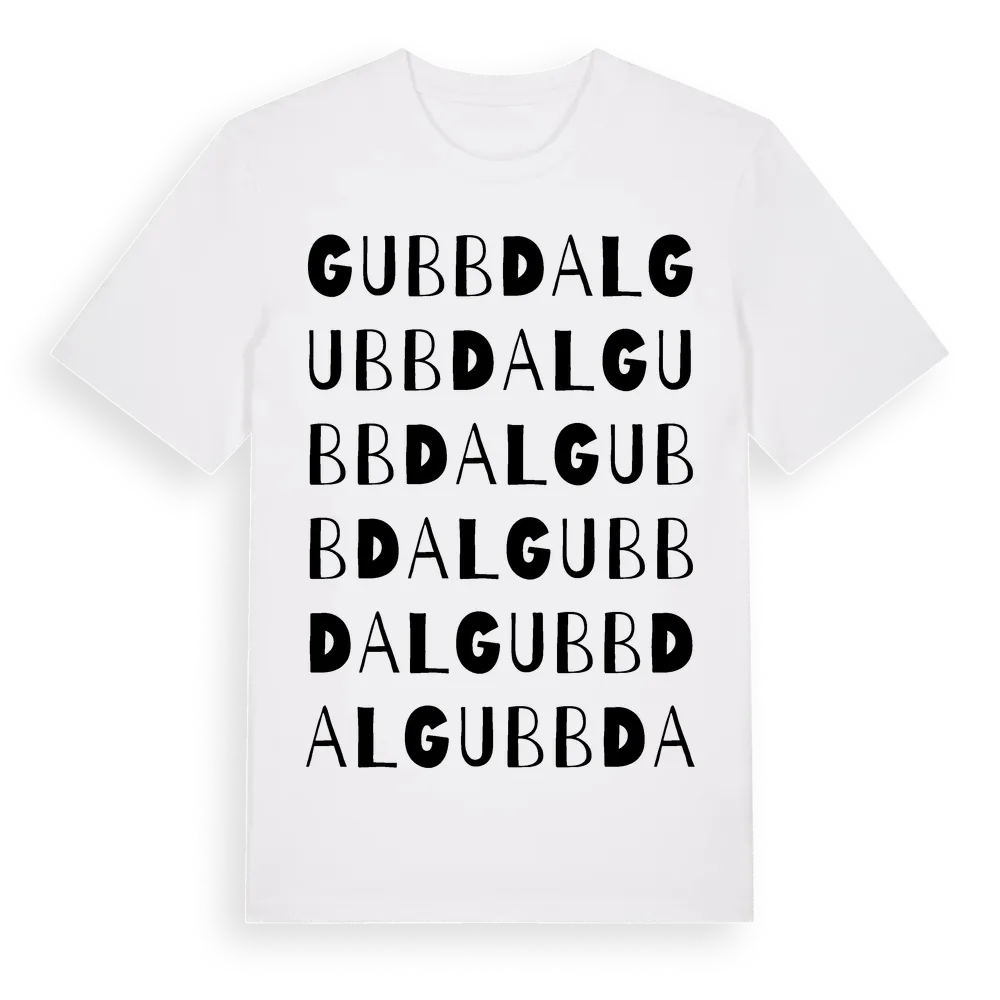 Gubbdal ordlek t-shirt är inspirerad av byn Gubbdal i Stockholms län, Sverige. Tröjan är designad för dig som har en speciell koppling till platsen – oavsett om du bor här, har rötterna här eller bara älskar Gubbdal.