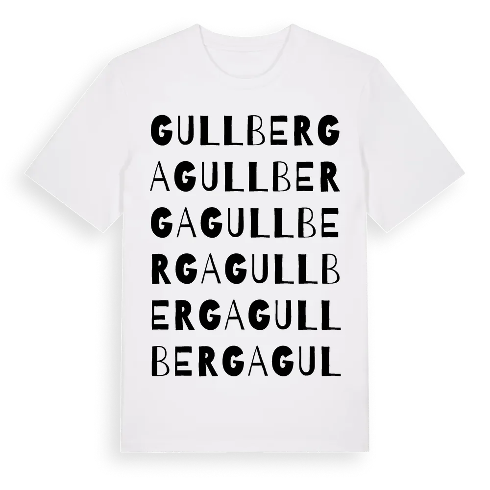 Gullberga ordlek t-shirt är inspirerad av Gullberga i Stockholms län, Sverige. Tröjan är designad för dig som har en speciell koppling till platsen – oavsett om du bor här, har rötterna här eller bara älskar Gullberga.