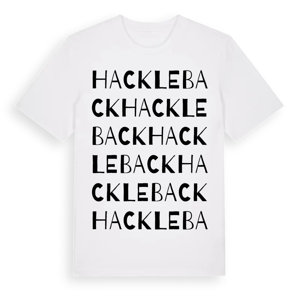 En ordlek byggd på Hacklebacks namn. Subtilt och klurig – ett motiv som bara de som verkligen känner platsen fullt ut förstår. Premium bomull, unisex – från Hackleback i Stockholms län.