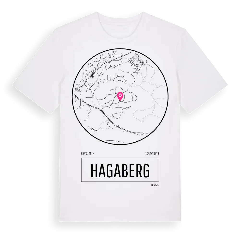 Hagaberg t-shirt är inspirerad av stadsdelen Hagaberg i Stockholms län, Sverige. Tröjan är designad för dig som har en speciell koppling till platsen – oavsett om du bor här, har rötterna här eller bara älskar Hagaberg.