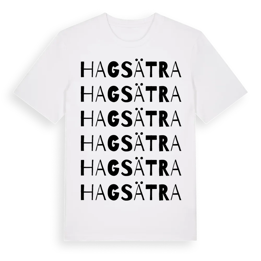 Hagsätra ordlek t-shirt är inspirerad av stadsdelen Hagsätra i Stockholms län, Sverige. Tröjan är designad för dig som har en speciell koppling till platsen – oavsett om du bor här, har rötterna här eller bara älskar Hagsätra.