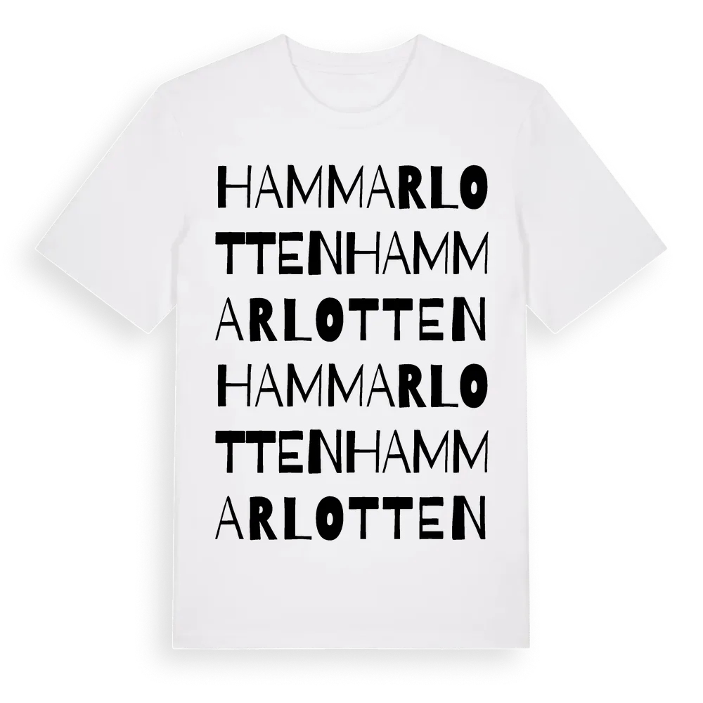 En ordlek byggd på Hammarlottens namn. Subtilt och klurig – ett motiv som bara de som verkligen känner platsen fullt ut förstår. Premium bomull, unisex – från byn Hammarlotten i Stockholms län.