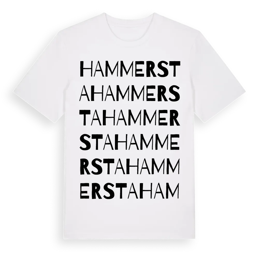 Hammersta ordlek t-shirt är inspirerad av Hammersta i Stockholms län, Sverige. Tröjan är designad för dig som har en speciell koppling till platsen – oavsett om du bor här, har rötterna här eller bara älskar Hammersta.