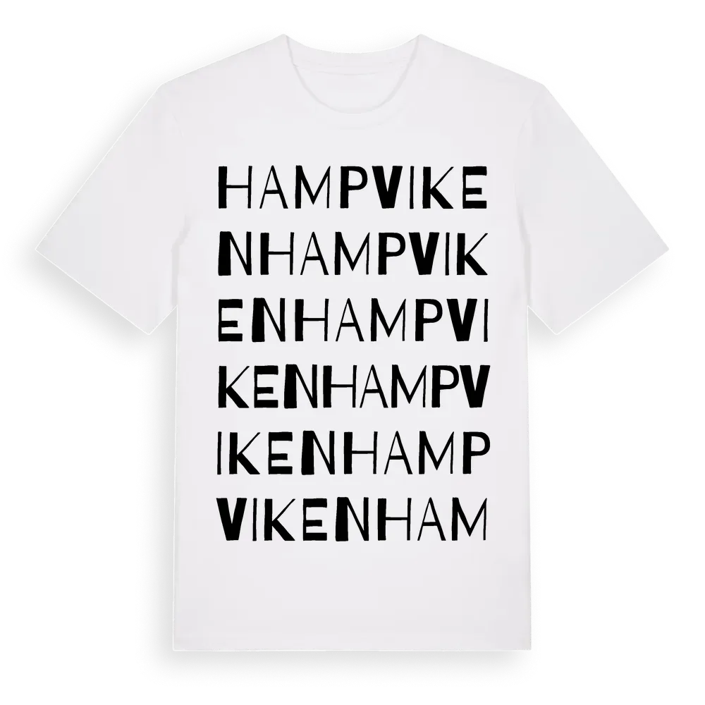 Hampviken ordlek t-shirt är inspirerad av Hampviken i Stockholms län, Sverige. Tröjan är designad för dig som har en speciell koppling till platsen – oavsett om du bor här, har rötterna här eller bara älskar Hampviken.