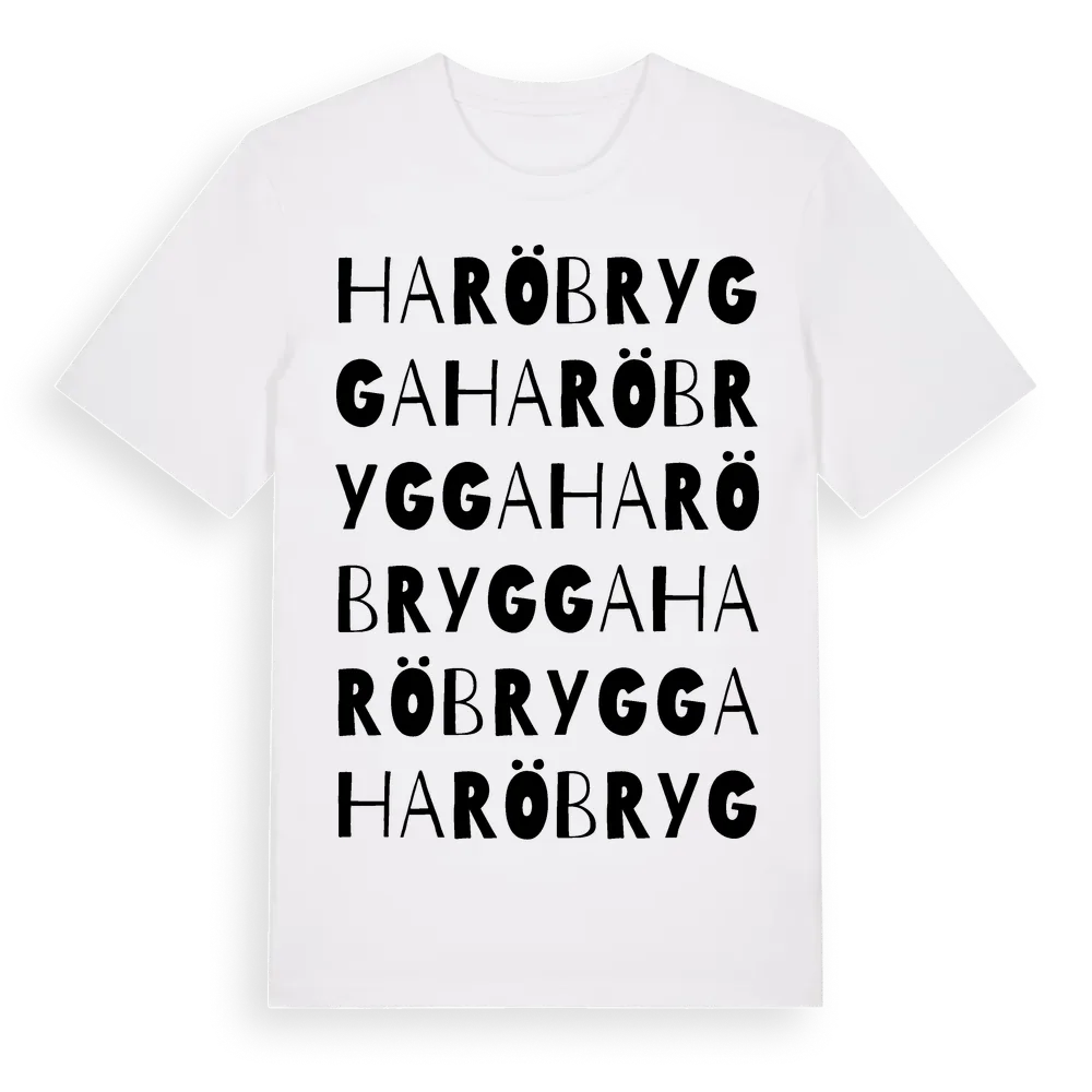 Harö Brygga ordlek t-shirt är inspirerad av Harö Brygga i Stockholms län, Sverige. Tröjan är designad för dig som har en speciell koppling till platsen – oavsett om du bor här, har rötterna här eller bara älskar Harö Brygga.