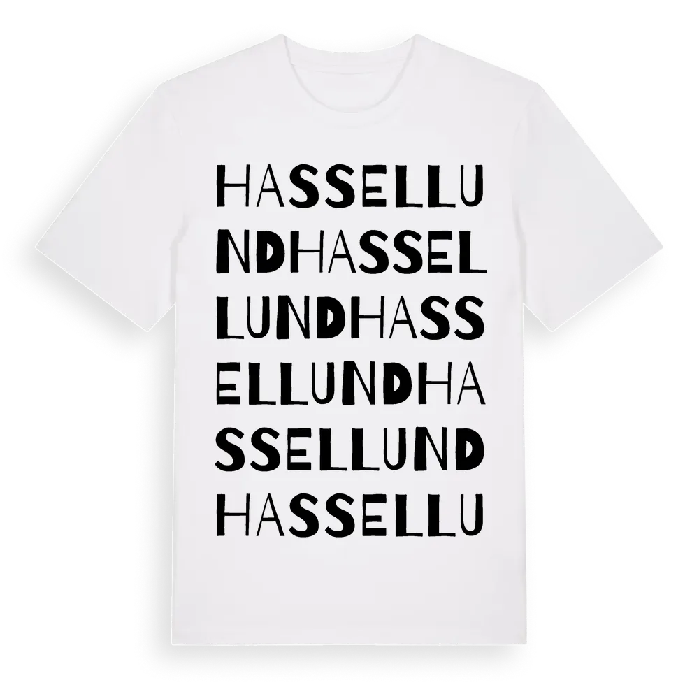 Hassellund ordlek t-shirt är inspirerad av Hassellund i Stockholms län, Sverige. Tröjan är designad för dig som har en speciell koppling till platsen – oavsett om du bor här, har rötterna här eller bara älskar Hassellund.