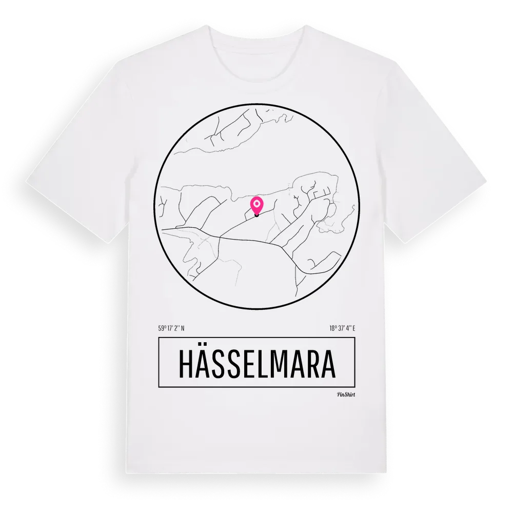 Hässelmara t-shirt är inspirerad av byn Hässelmara i Stockholms län, Sverige. Tröjan är designad för dig som har en speciell koppling till platsen – oavsett om du bor här, har rötterna här eller bara älskar Hässelmara.