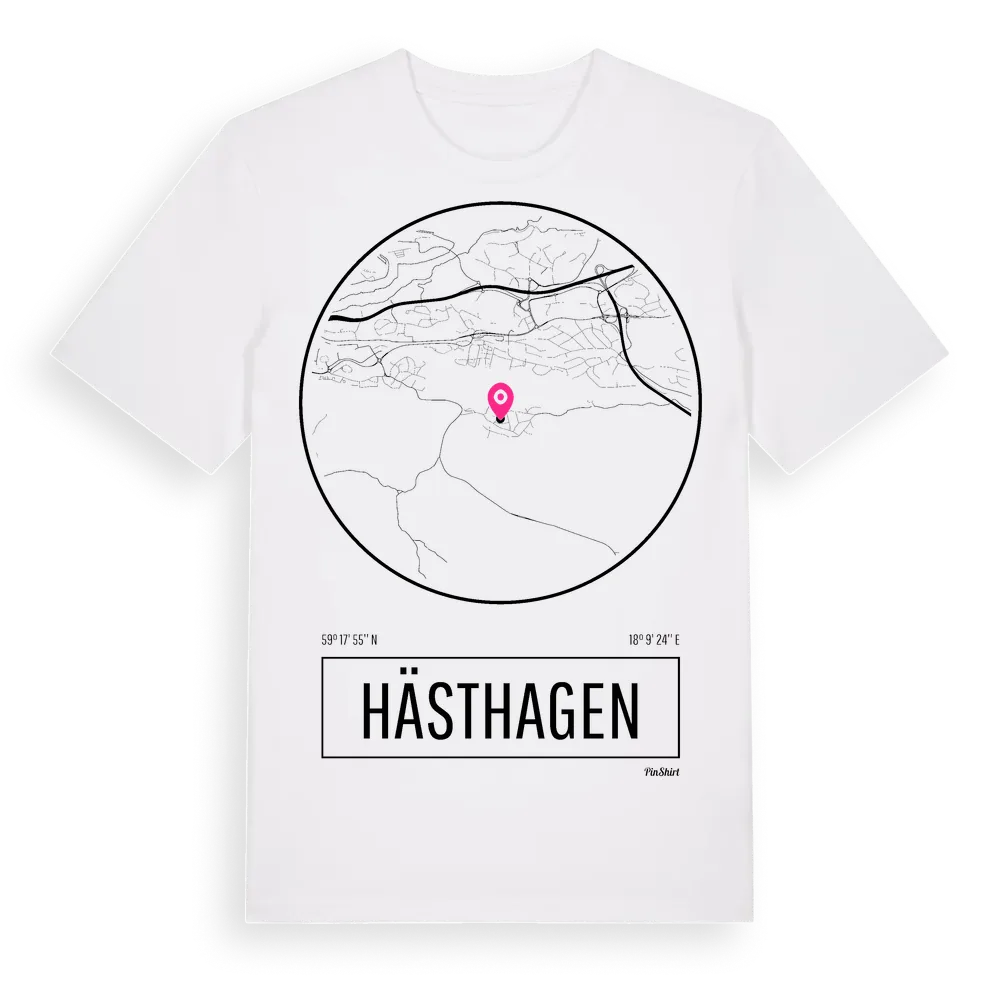 Hästhagen t-shirt är inspirerad av byn Hästhagen i Stockholms län, Sverige. Tröjan är designad för dig som har en speciell koppling till platsen – oavsett om du bor här, har rötterna här eller bara älskar Hästhagen.