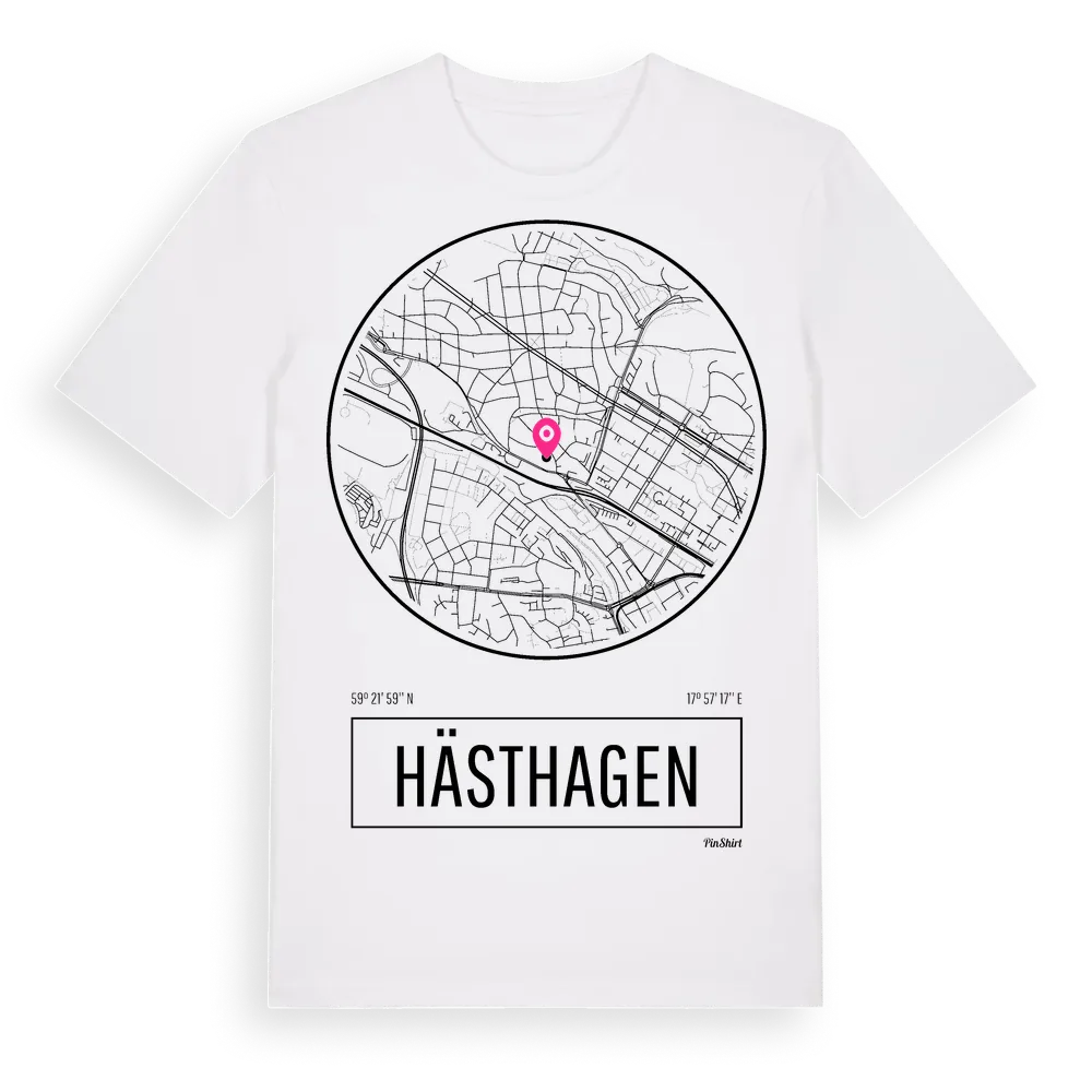 Hästhagen t-shirt är inspirerad av stadsdelen Hästhagen i Stockholms län, Sverige. Tröjan är designad för dig som har en speciell koppling till platsen – oavsett om du bor här, har rötterna här eller bara älskar Hästhagen.