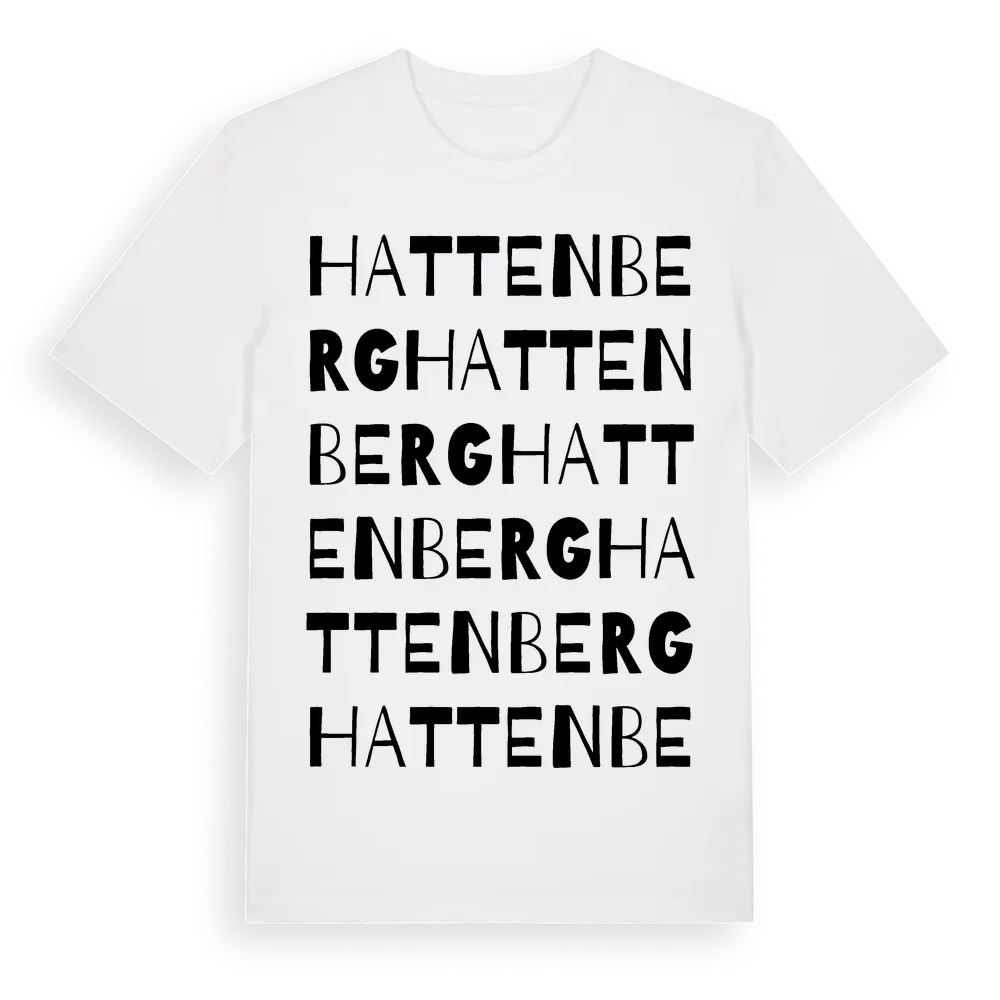 Hattenberg ordlek t-shirt är inspirerad av Hattenberg i Stockholms län, Sverige. Tröjan är designad för dig som har en speciell koppling till platsen – oavsett om du bor här, har rötterna här eller bara älskar Hattenberg.