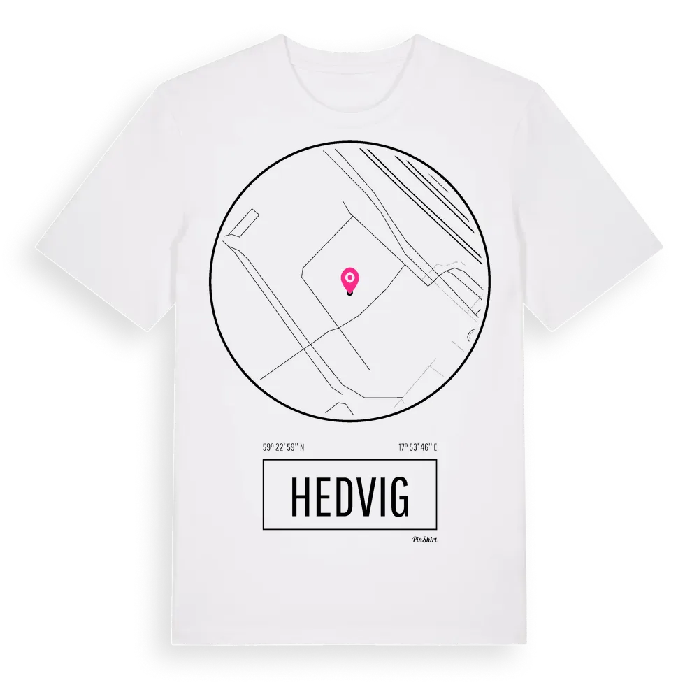 Ett rent, runt tryck med Hedvigs namn. Minimalistiskt och stilrent – perfekt för den som känner platsen utan att skrika det. Premium bomull, unisex – från stadsdelen Hedvig i Stockholms län.