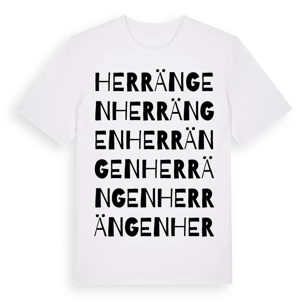 Herrängen ordlek t-shirt är inspirerad av stadsdelen Herrängen i Stockholms län, Sverige. Tröjan är designad för dig som har en speciell koppling till platsen – oavsett om du bor här, har rötterna här eller bara älskar Herrängen.