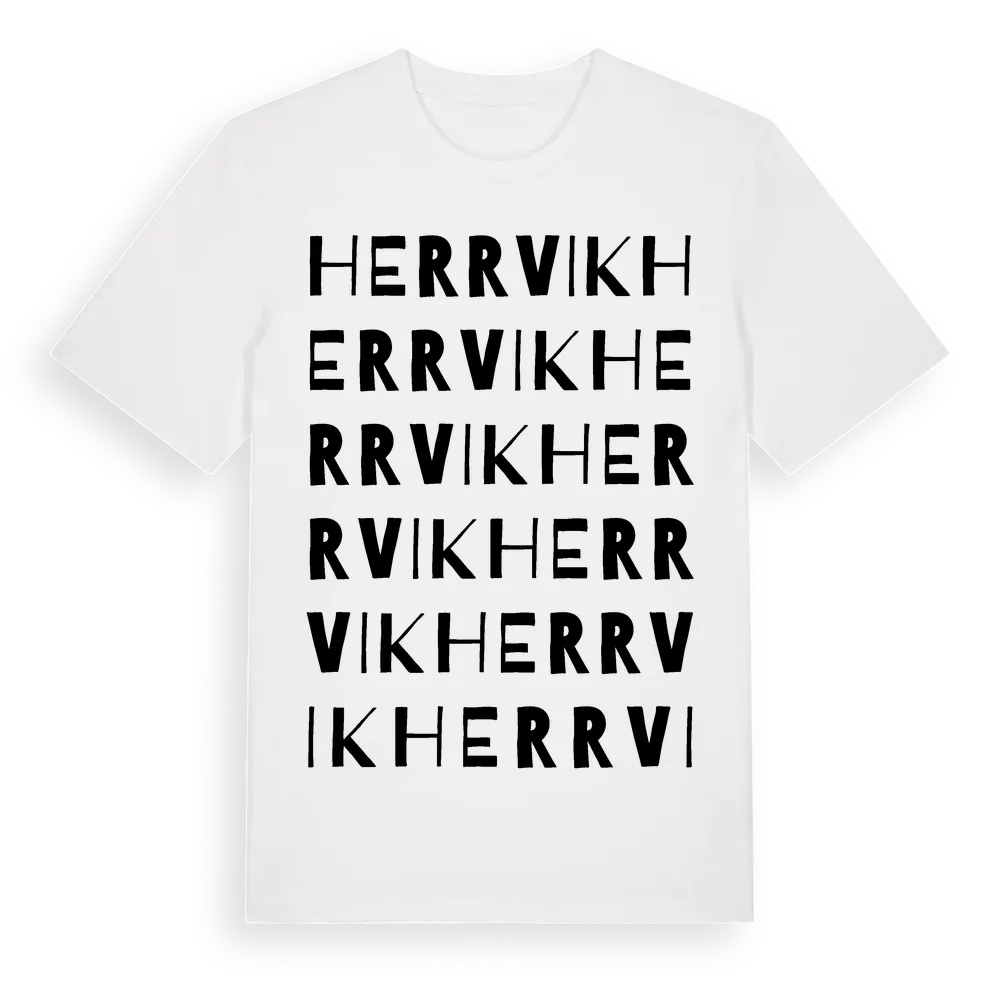 Herrvik ordlek t-shirt är inspirerad av stadsdelen Herrvik i Stockholms län, Sverige. Tröjan är designad för dig som har en speciell koppling till platsen – oavsett om du bor här, har rötterna här eller bara älskar Herrvik.