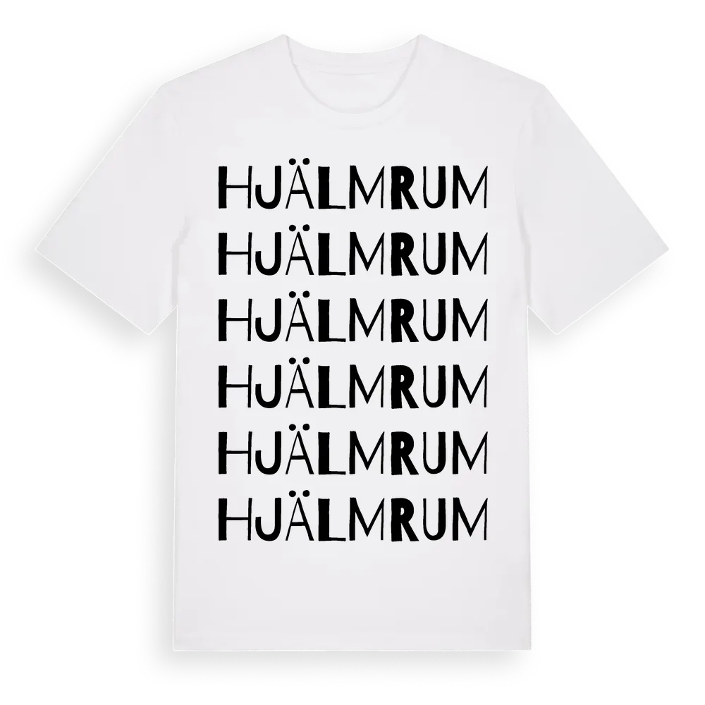 Hjälmrum ordlek t-shirt är inspirerad av Hjälmrum i Stockholms län, Sverige. Tröjan är designad för dig som har en speciell koppling till platsen – oavsett om du bor här, har rötterna här eller bara älskar Hjälmrum.