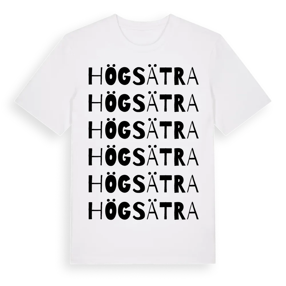 Högsätra ordlek t-shirt är inspirerad av stadsdelen Högsätra i Stockholms län, Sverige. Tröjan är designad för dig som har en speciell koppling till platsen – oavsett om du bor här, har rötterna här eller bara älskar Högsätra.