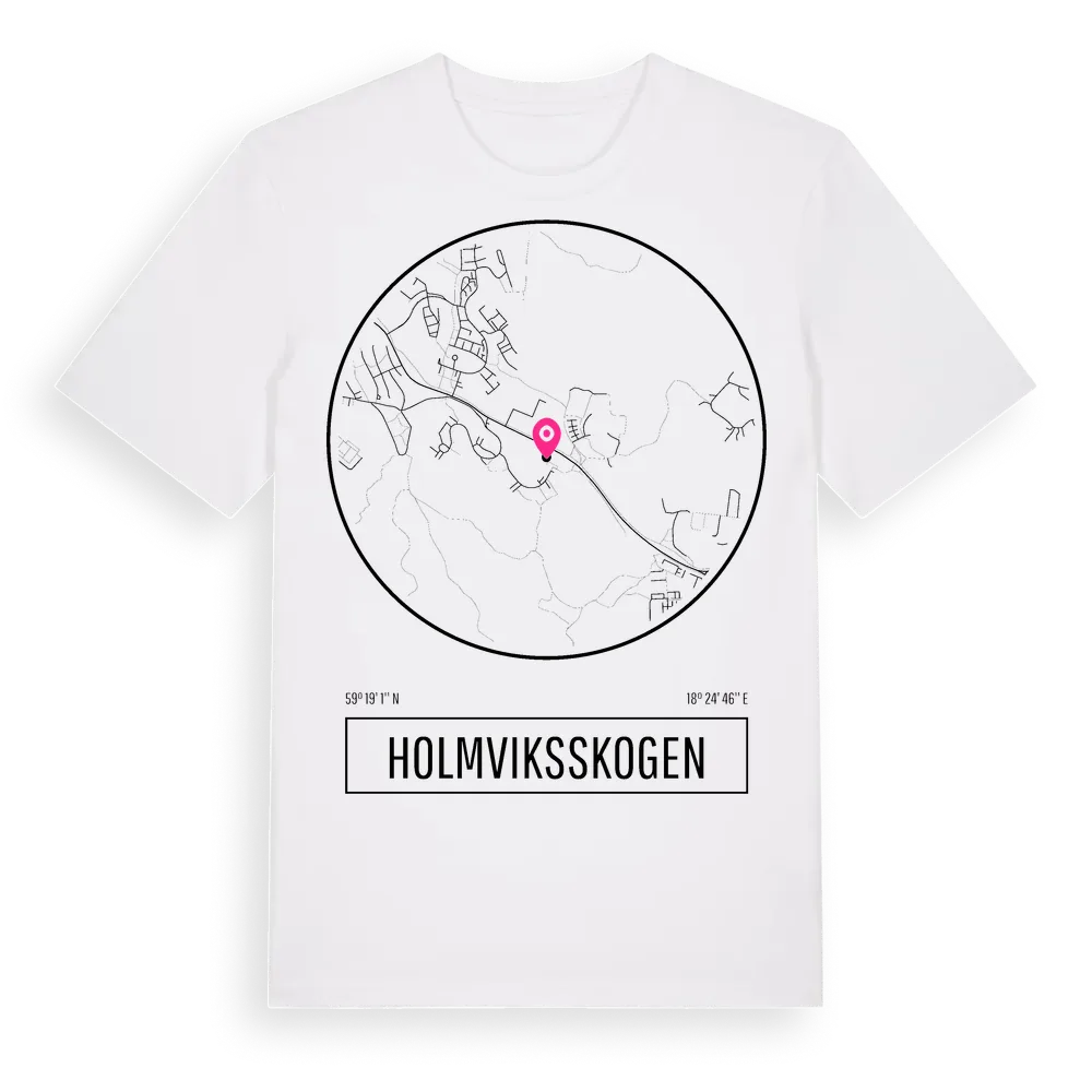 Holmviksskogen t-shirt är inspirerad av Holmviksskogen i Stockholms län, Sverige. Tröjan är designad för dig som har en speciell koppling till platsen – oavsett om du bor här, har rötterna här eller bara älskar Holmviksskogen.