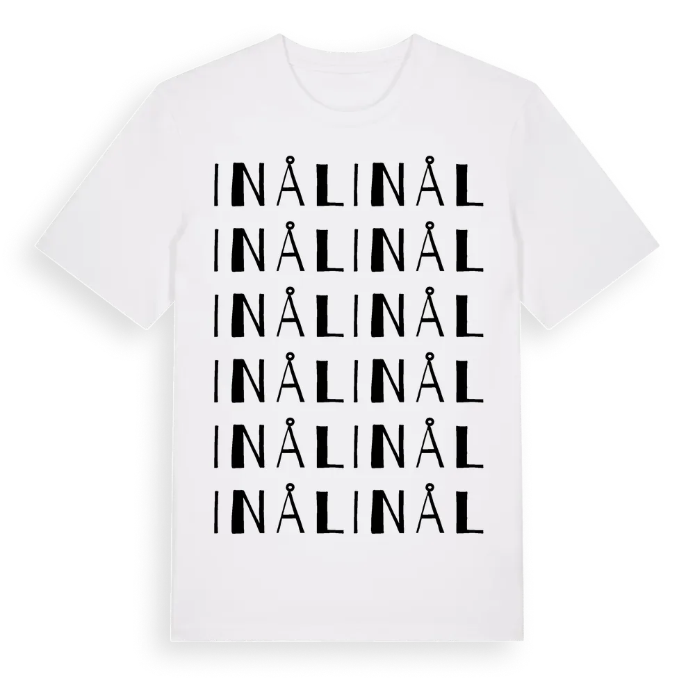 Inål ordlek t-shirt är inspirerad av byn Inål i Stockholms län, Sverige. Tröjan är designad för dig som har en speciell koppling till platsen – oavsett om du bor här, har rötterna här eller bara älskar Inål.