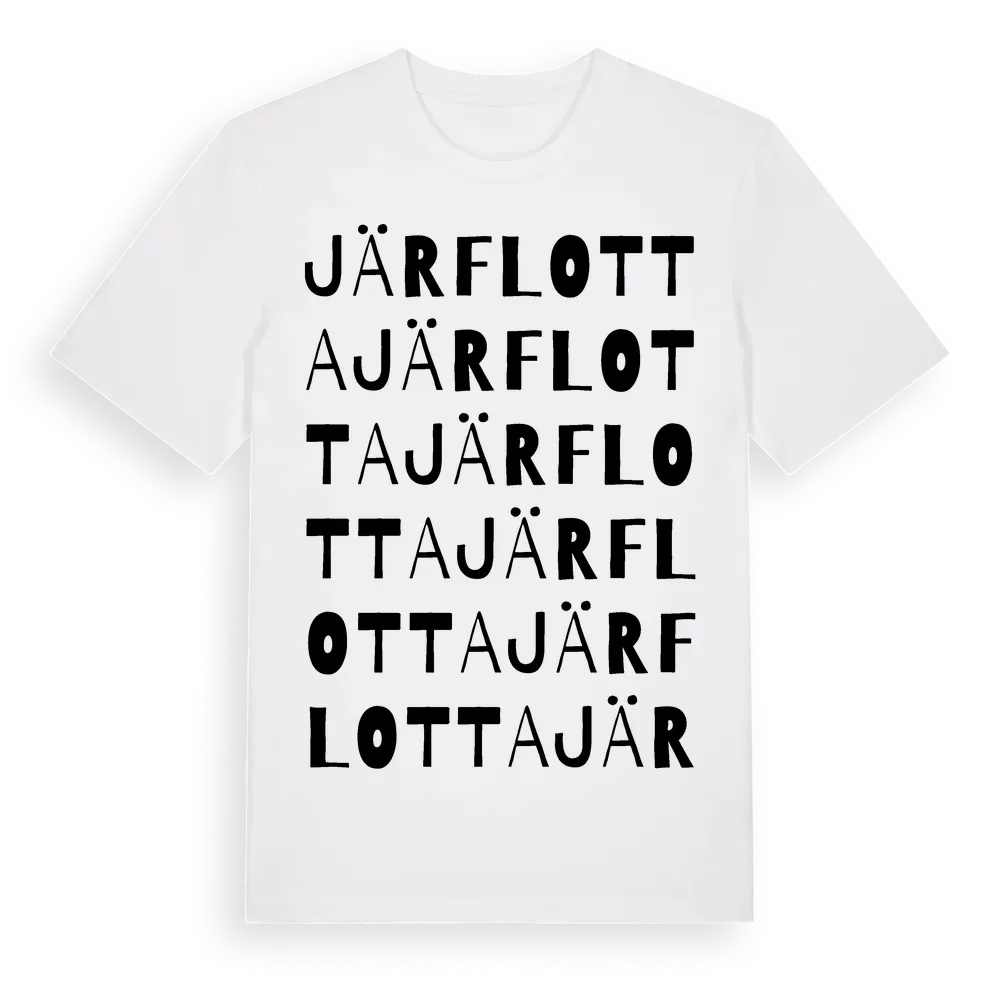 Järflotta ordlek t-shirt är inspirerad av byn Järflotta i Stockholms län, Sverige. Tröjan är designad för dig som har en speciell koppling till platsen – oavsett om du bor här, har rötterna här eller bara älskar Järflotta.