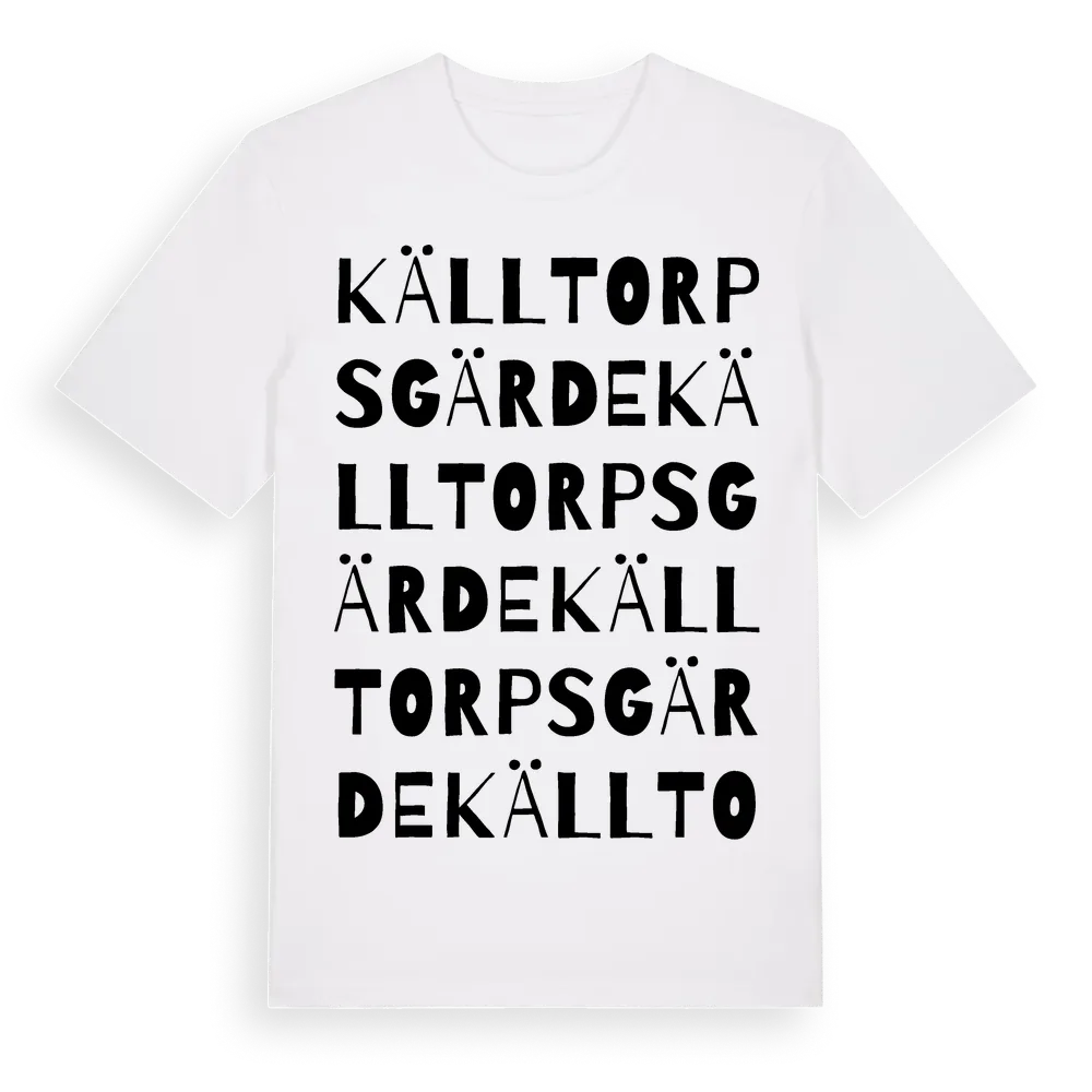 Källtorps Gärde ordlek t-shirt är inspirerad av Källtorps Gärde i Stockholms län, Sverige. Tröjan är designad för dig som har en speciell koppling till platsen – oavsett om du bor här, har rötterna här eller bara älskar Källtorps Gärde.