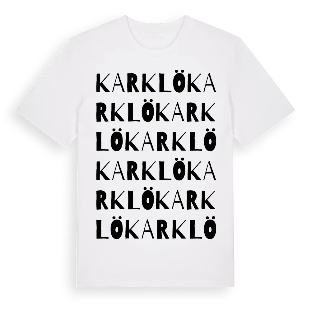 En ordlek byggd på Karklös namn. Subtilt och klurig – ett motiv som bara de som verkligen känner platsen fullt ut förstår. Premium bomull, unisex – från ön Karklö i Stockholms län.