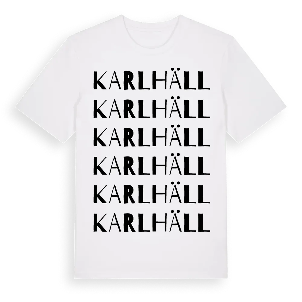 Karlhäll ordlek t-shirt är inspirerad av Karlhäll i Stockholms län, Sverige. Tröjan är designad för dig som har en speciell koppling till platsen – oavsett om du bor här, har rötterna här eller bara älskar Karlhäll.
