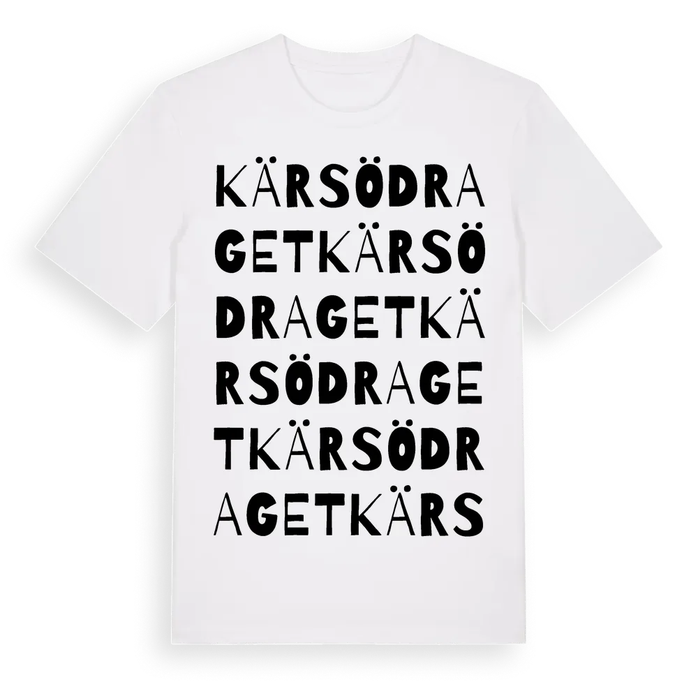 Kärsödraget ordlek t-shirt är inspirerad av Kärsödraget i Stockholms län, Sverige. Tröjan är designad för dig som har en speciell koppling till platsen – oavsett om du bor här, har rötterna här eller bara älskar Kärsödraget.