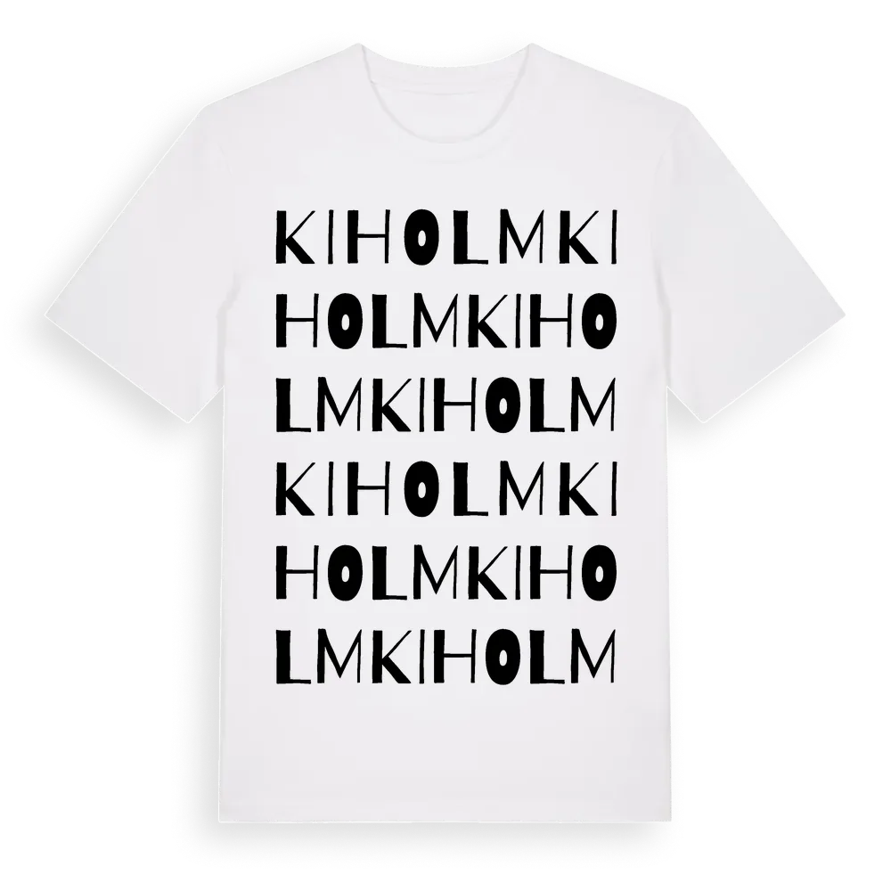 Kiholm ordlek t-shirt är inspirerad av Kiholm i Stockholms län, Sverige. Tröjan är designad för dig som har en speciell koppling till platsen – oavsett om du bor här, har rötterna här eller bara älskar Kiholm.