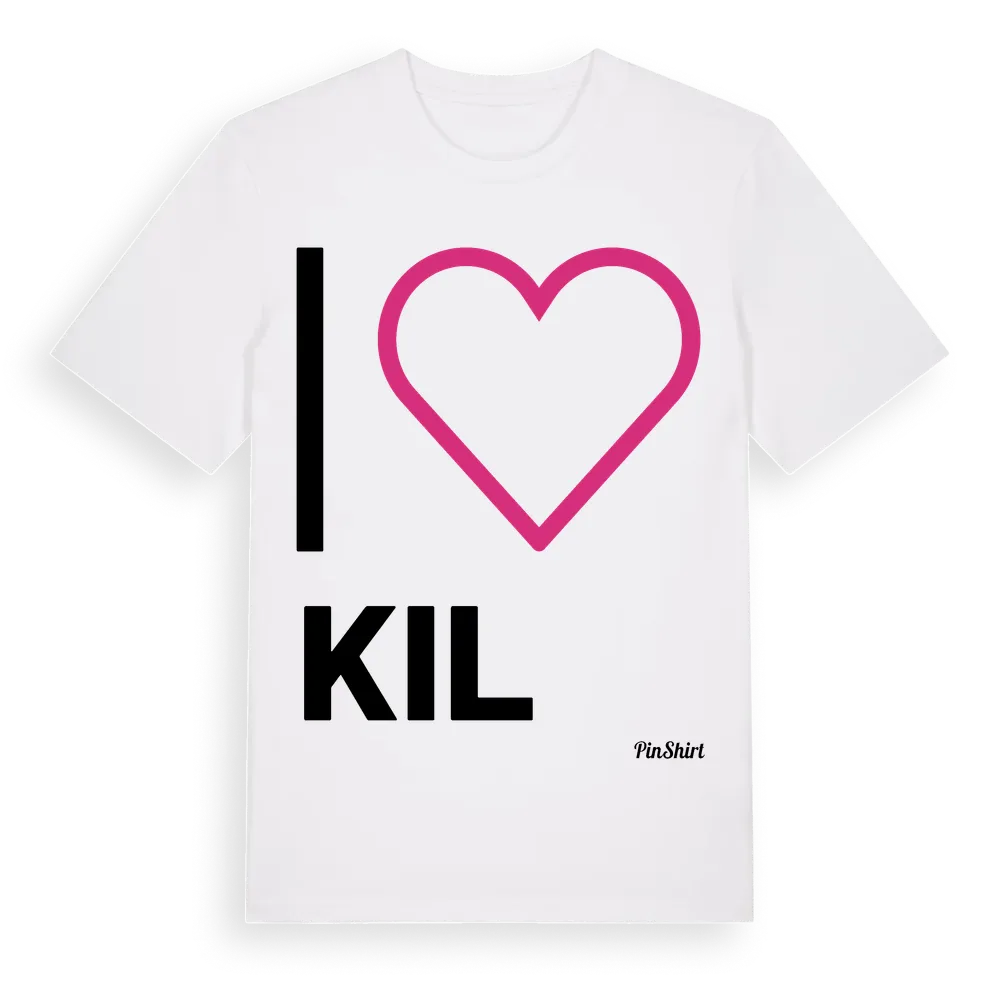 Det klassiska "I ❤ Kil"-motivet i stort format som täcker hela bröstet. För dig som vill visa kärleken till Kil på riktigt. Premium bomull, unisex – från stadsdelen Kil i Stockholms län.
