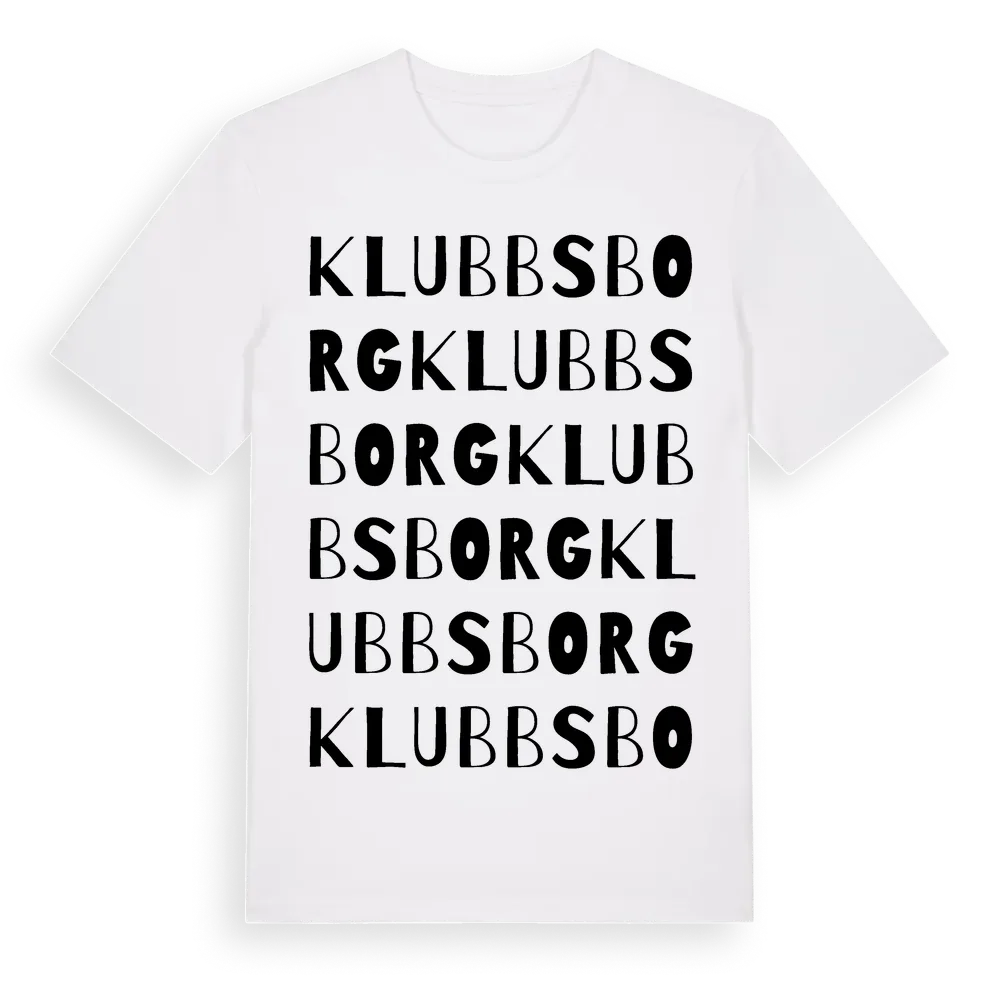 Klubbsborg ordlek t-shirt är inspirerad av Klubbsborg i Stockholms län, Sverige. Tröjan är designad för dig som har en speciell koppling till platsen – oavsett om du bor här, har rötterna här eller bara älskar Klubbsborg.
