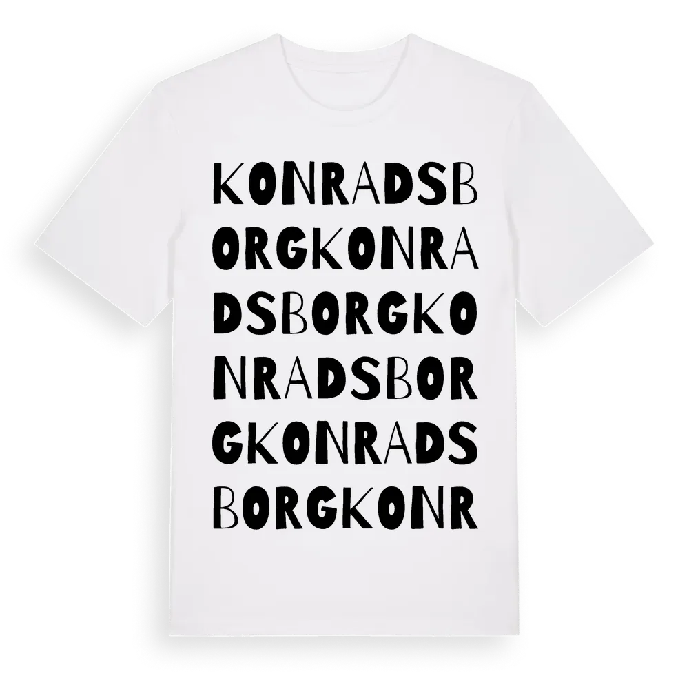 Konradsborg ordlek t-shirt är inspirerad av Konradsborg i Stockholms län, Sverige. Tröjan är designad för dig som har en speciell koppling till platsen – oavsett om du bor här, har rötterna här eller bara älskar Konradsborg.