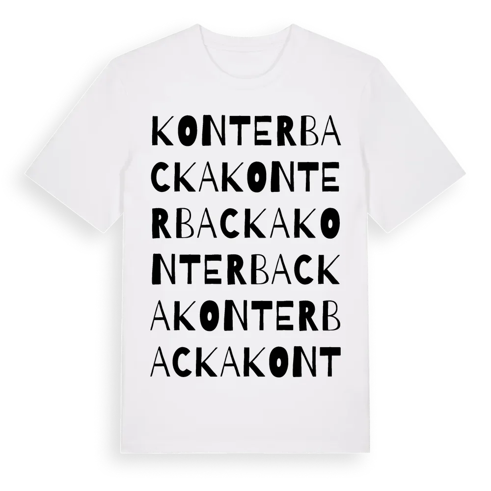 En ordlek byggd på Konterbackas namn. Subtilt och klurig – ett motiv som bara de som verkligen känner platsen fullt ut förstår. Premium bomull, unisex – från Konterbacka i Stockholms län.
