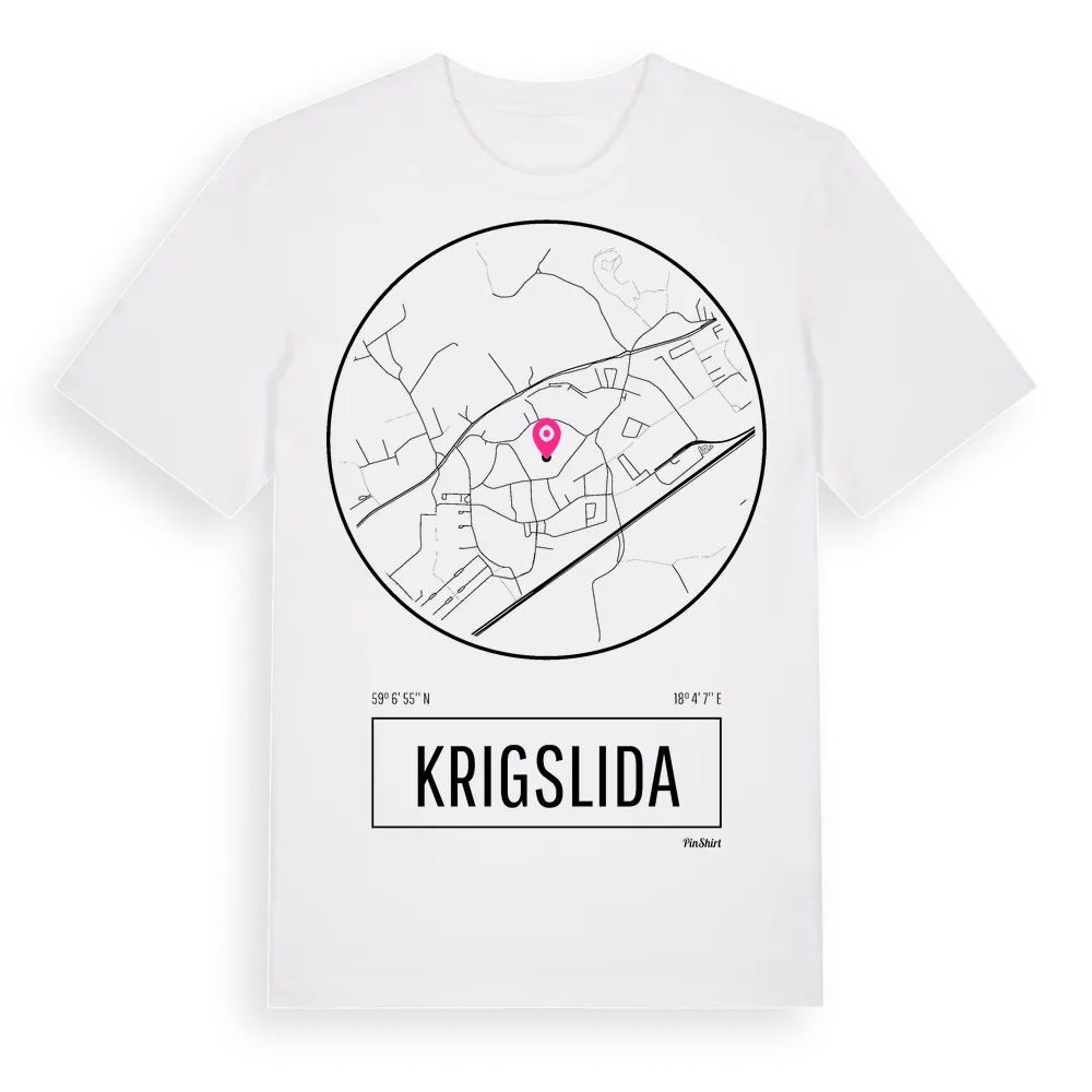 Krigslida t-shirt är inspirerad av byn Krigslida i Stockholms län, Sverige. Tröjan är designad för dig som har en speciell koppling till platsen – oavsett om du bor här, har rötterna här eller bara älskar Krigslida.