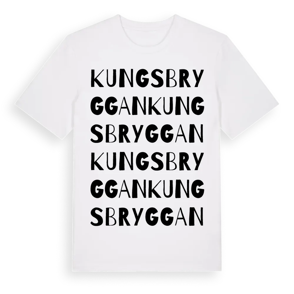 En ordlek byggd på Kungsbryggans namn. Subtilt och klurig – ett motiv som bara de som verkligen känner platsen fullt ut förstår. Premium bomull, unisex – från byn Kungsbryggan i Stockholms län.