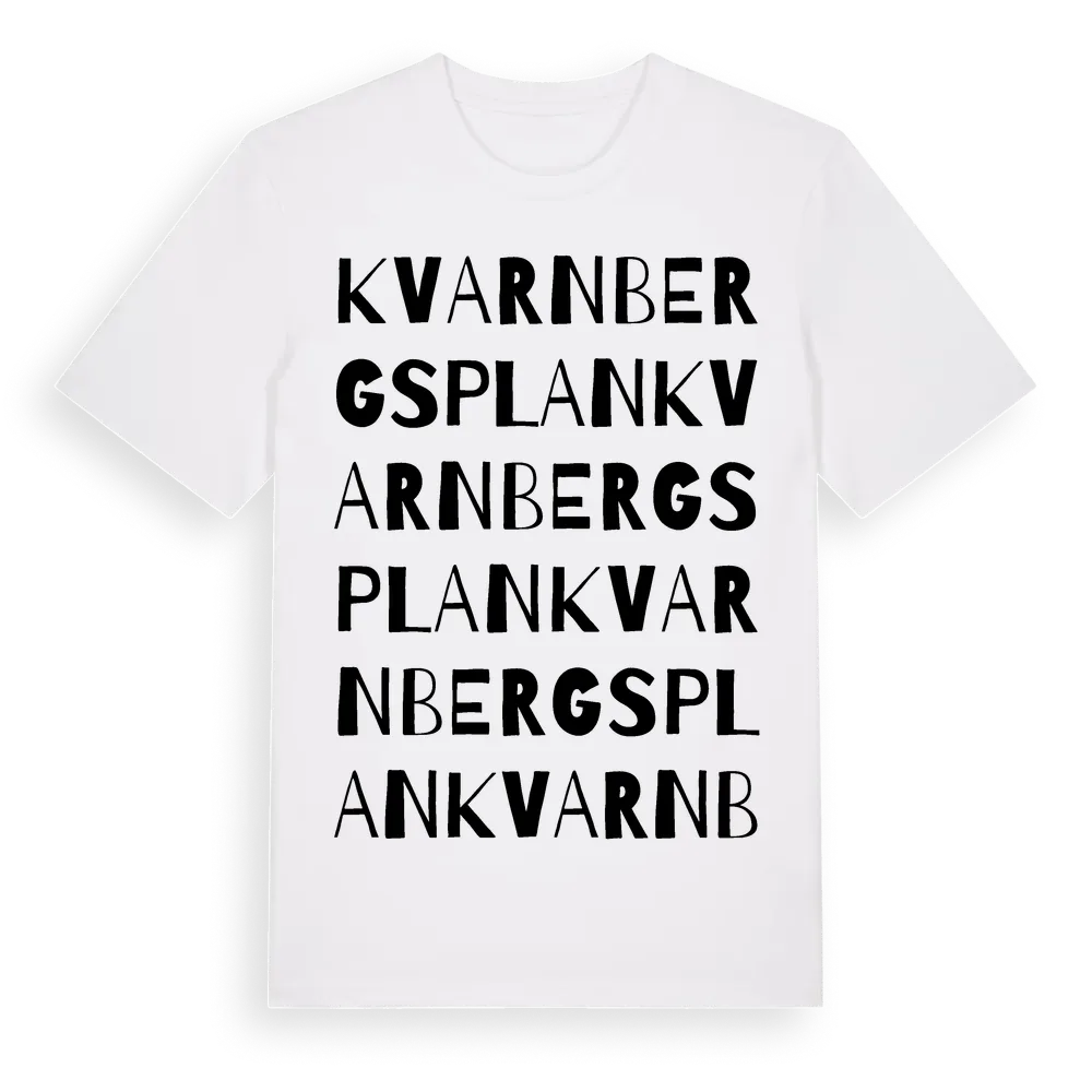 Kvarnbergsplan ordlek t-shirt är inspirerad av stadsdelen Kvarnbergsplan i Stockholms län, Sverige. Tröjan är designad för dig som har en speciell koppling till platsen – oavsett om du bor här, har rötterna här eller bara älskar Kvarnbergsplan.