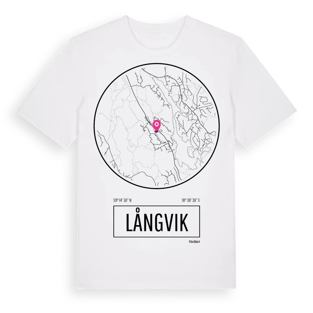 Långvik t-shirt är inspirerad av byn Långvik i Stockholms län, Sverige. Tröjan är designad för dig som har en speciell koppling till platsen – oavsett om du bor här, har rötterna här eller bara älskar Långvik.