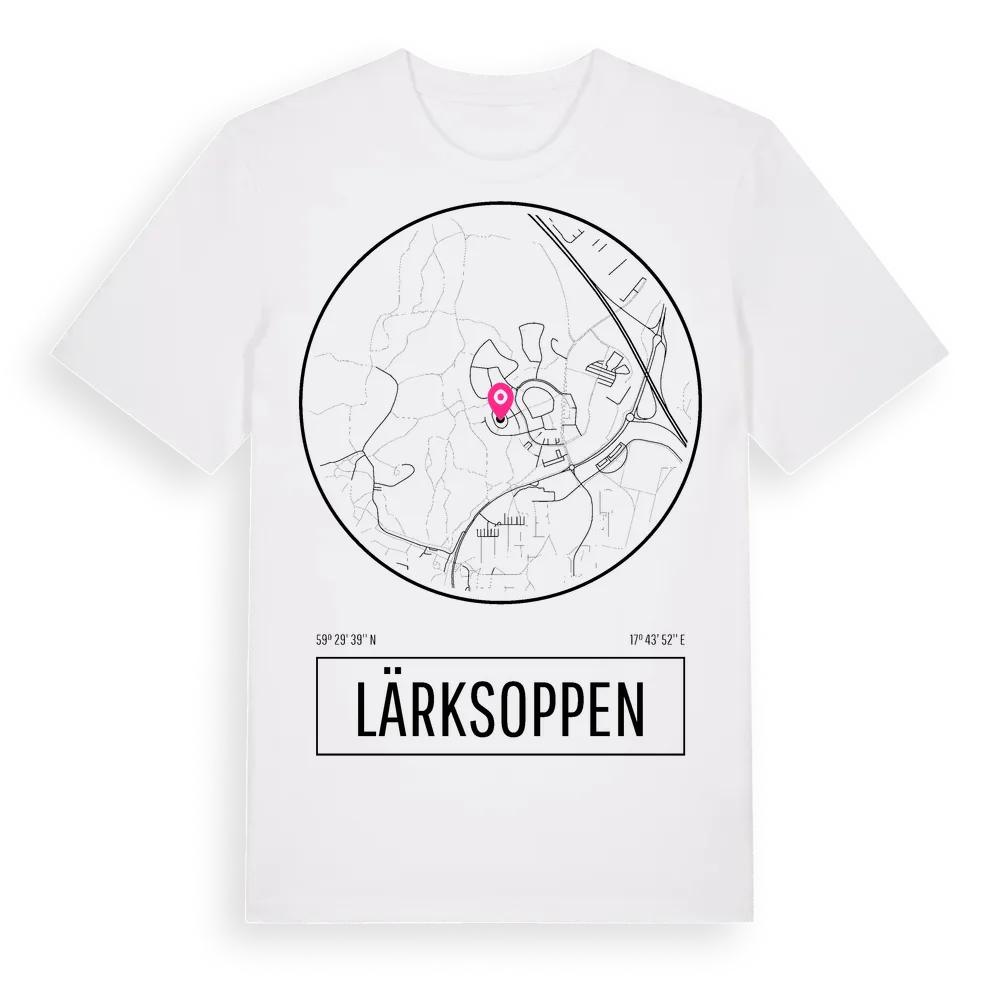 Lärksoppen t-shirt är inspirerad av stadsdelen Lärksoppen i Stockholms län, Sverige. Tröjan är designad för dig som har en speciell koppling till platsen – oavsett om du bor här, har rötterna här eller bara älskar Lärksoppen.