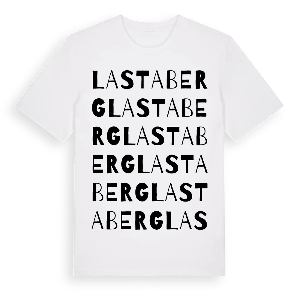 En ordlek byggd på Lastabergs namn. Subtilt och klurig – ett motiv som bara de som verkligen känner platsen fullt ut förstår. Premium bomull, unisex – från Lastaberg i Stockholms län.
