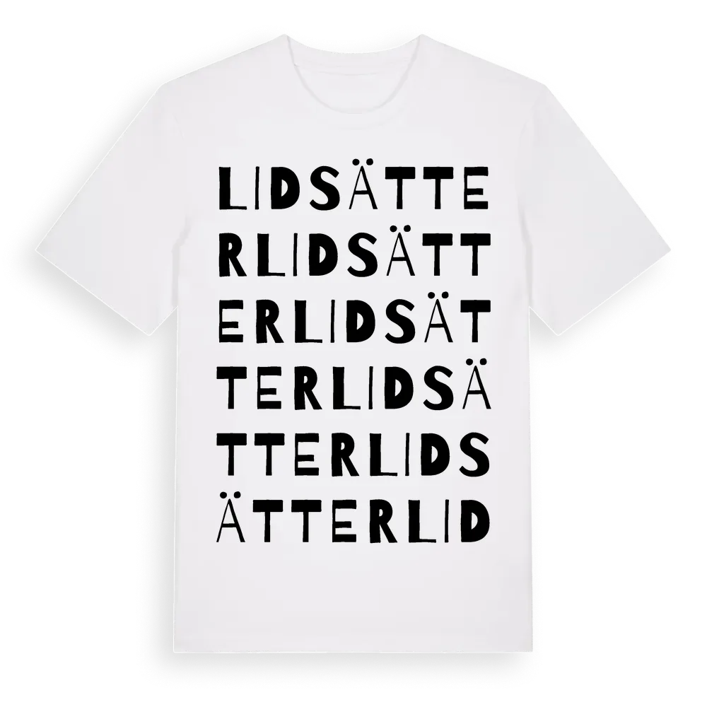 Lidsätter ordlek t-shirt är inspirerad av Lidsätter i Stockholms län, Sverige. Tröjan är designad för dig som har en speciell koppling till platsen – oavsett om du bor här, har rötterna här eller bara älskar Lidsätter.