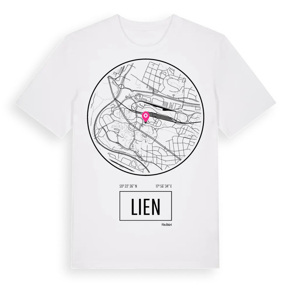 Lien t-shirt är inspirerad av stadsdelen Lien i Stockholms län, Sverige. Tröjan är designad för dig som har en speciell koppling till platsen – oavsett om du bor här, har rötterna här eller bara älskar Lien.