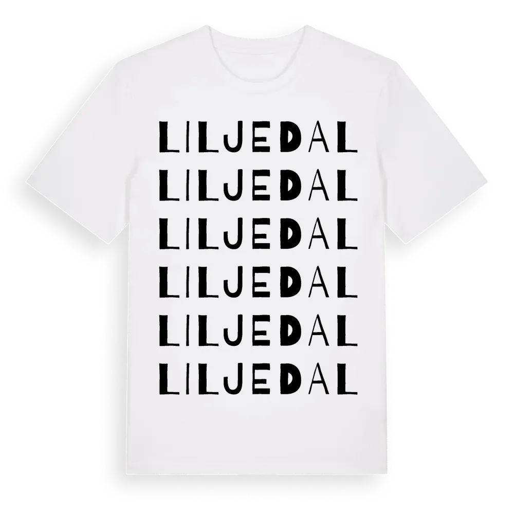 Liljedal ordlek t-shirt är inspirerad av byn Liljedal i Stockholms län, Sverige. Tröjan är designad för dig som har en speciell koppling till platsen – oavsett om du bor här, har rötterna här eller bara älskar Liljedal.