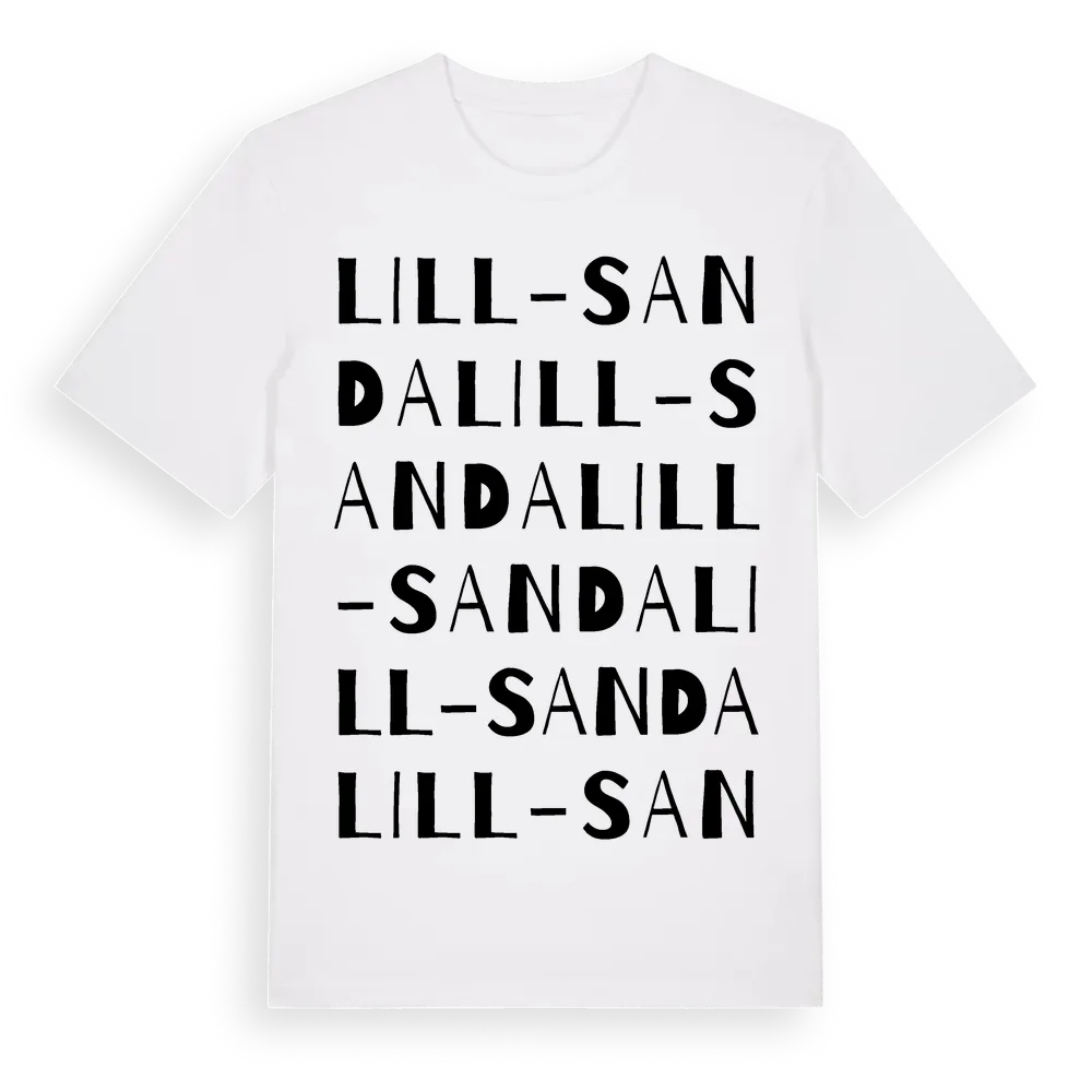 En ordlek byggd på Lill-Sandas namn. Subtilt och klurig – ett motiv som bara de som verkligen känner platsen fullt ut förstår. Premium bomull, unisex – från Lill-Sanda i Stockholms län.